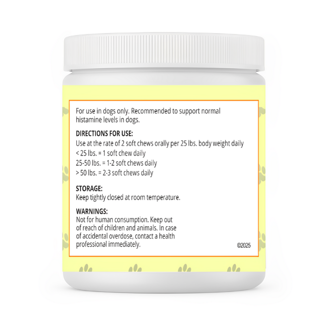 Calms allergy-related inflammation and blocks histamine responses to soothe your dog’s skin and reduce itching. Supports healthy digestion and the gut-immune connection to minimize flare-ups triggered by pollen, grass, and other environmental allergens. Aids recovery after allergen exposure and promotes long-term immune resilience, keeping your pup comfortable naturally—without harsh chemicals or fillers.